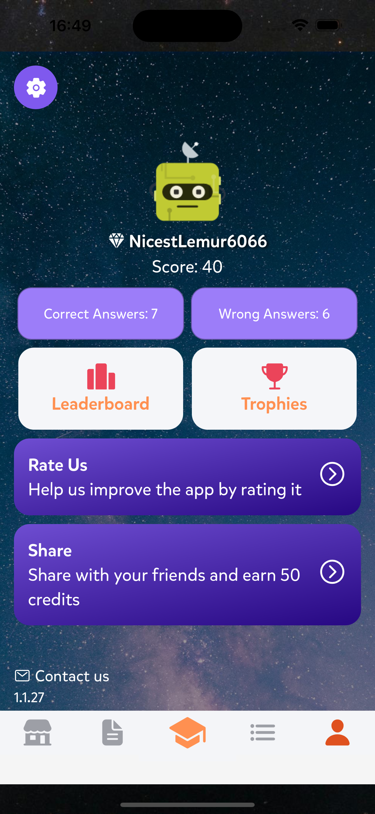 Get ready to challenge yourself and boost your knowledge with Erudia! Generate personalized quizzes on any topic and in over 30 languages, and see how many you can answer correctly. Share the app with friends and family so they can join the fun too — each quiz is unique, powered by AI, and designed to keep your brain engaged and growing.