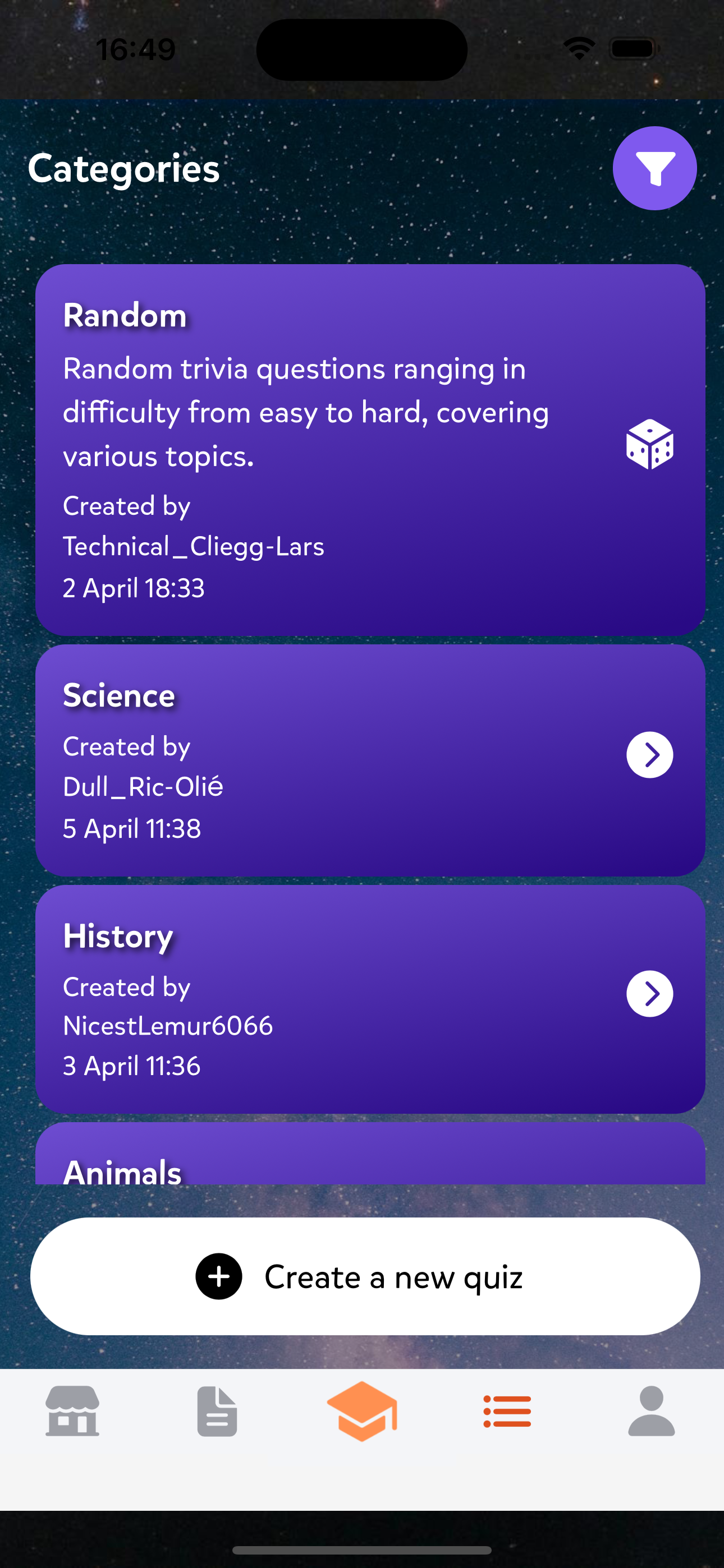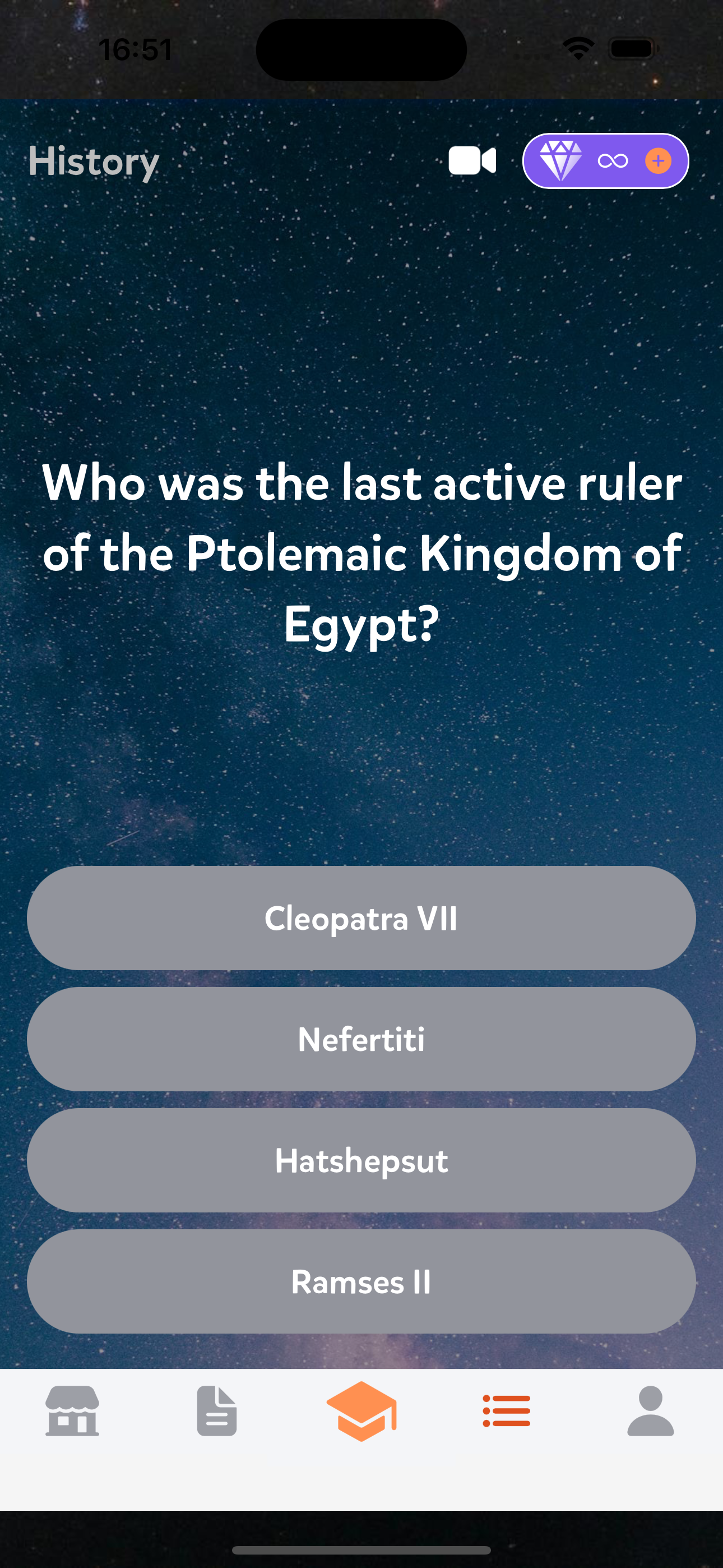 Erudia features a variety of trivia quizzes that help you solve even the most challenging questions across a wide range of topics. It keeps you entertained and engaged, helping you enhance your knowledge and trivia skills with each quiz you complete.